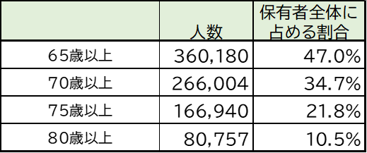 表-1 高齢者の大型二種免許保有者の状況